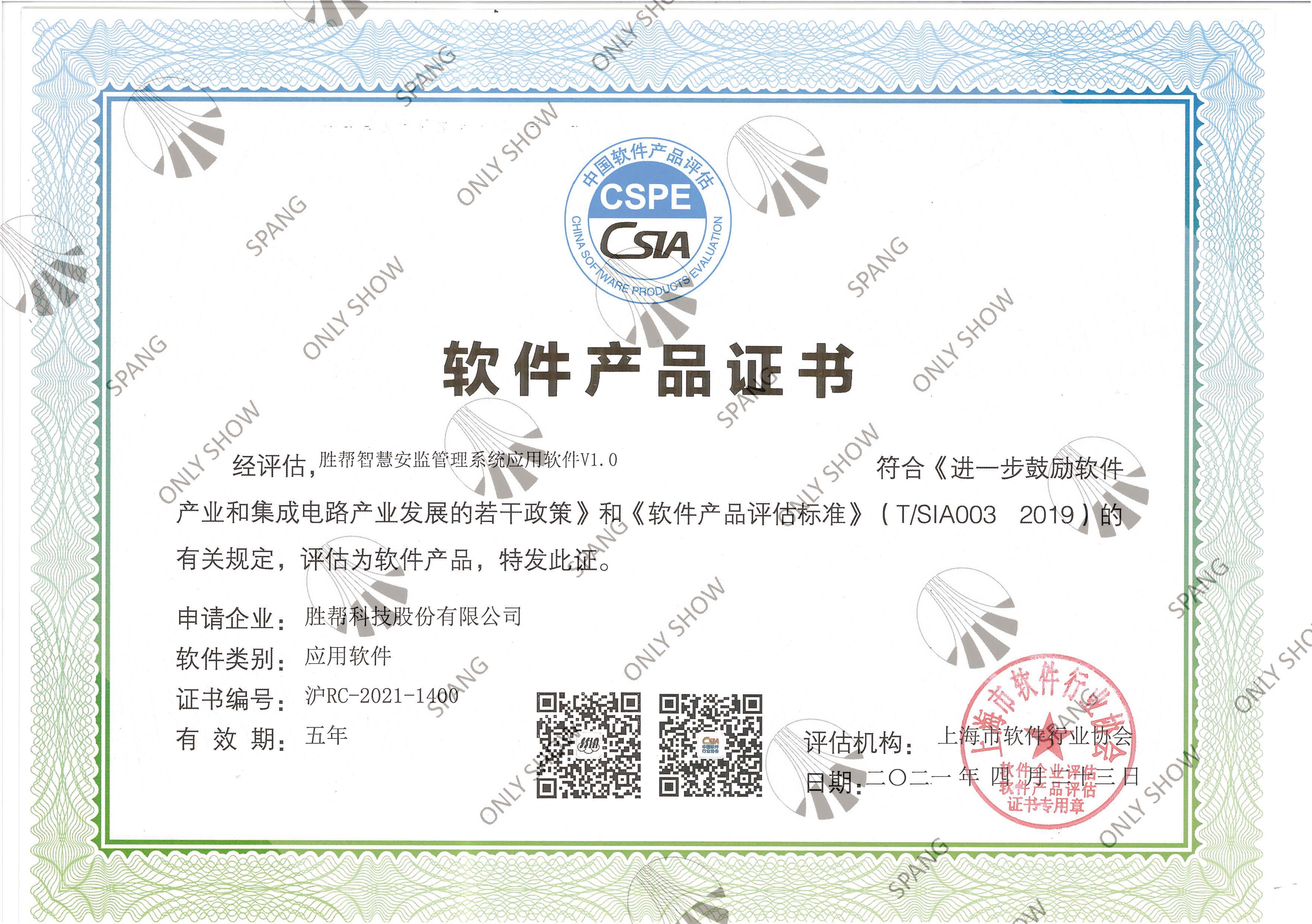 智慧安監(jiān)管理系統(tǒng)應(yīng)用軟件產(chǎn)品證書