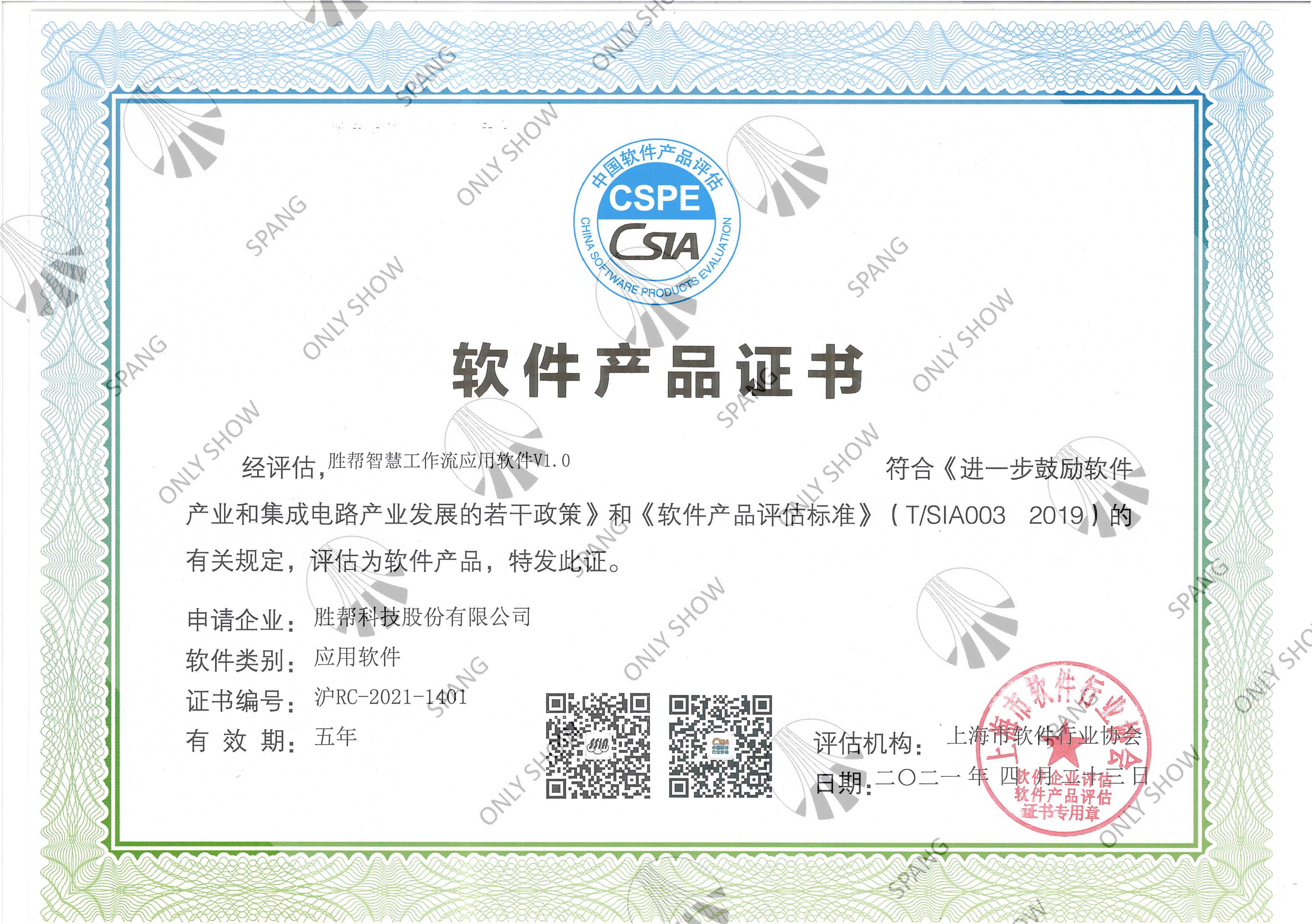 智慧工作流應(yīng)用軟件產(chǎn)品證書