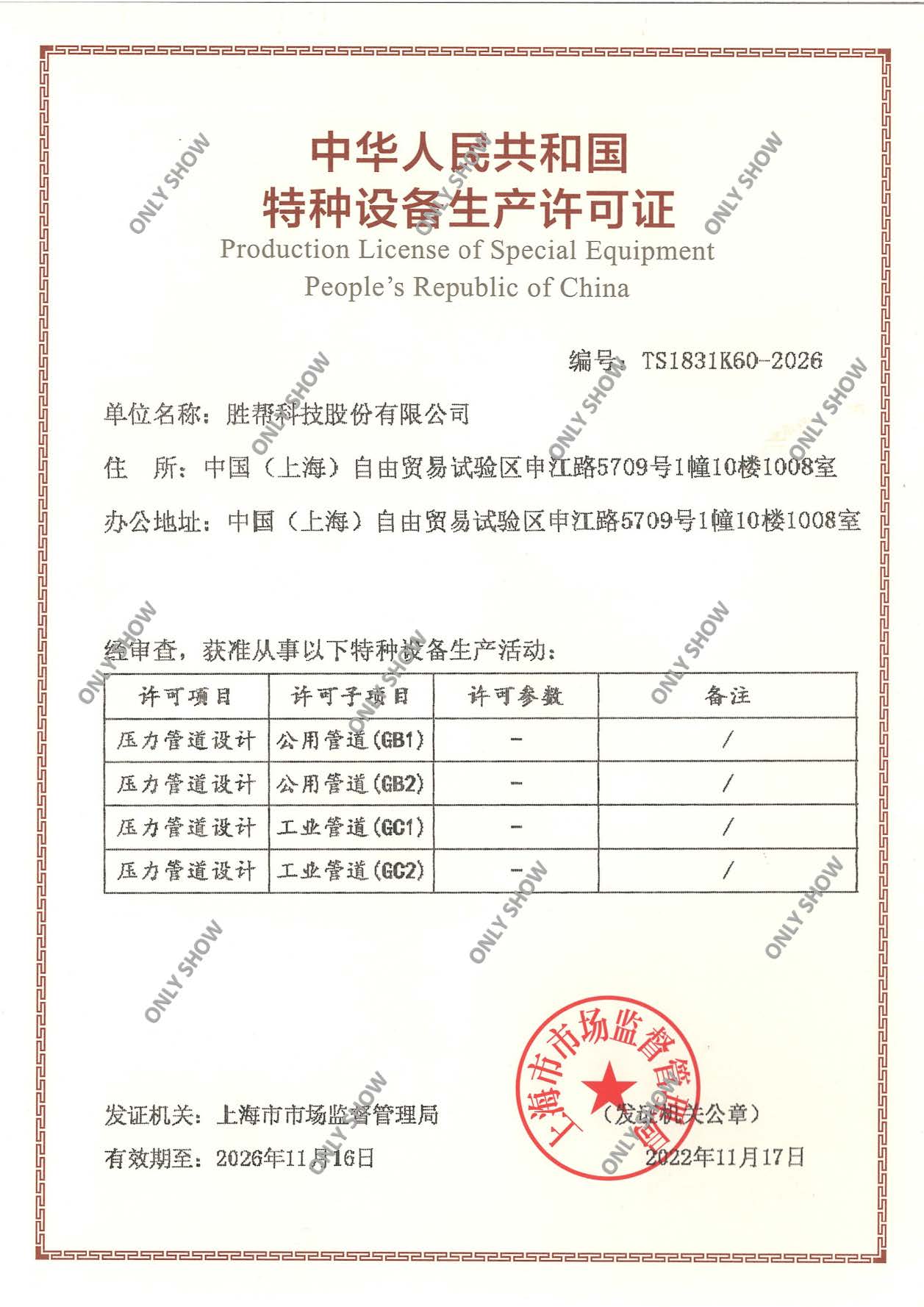 公司順利取得壓力管道設(shè)計(jì)許可證書