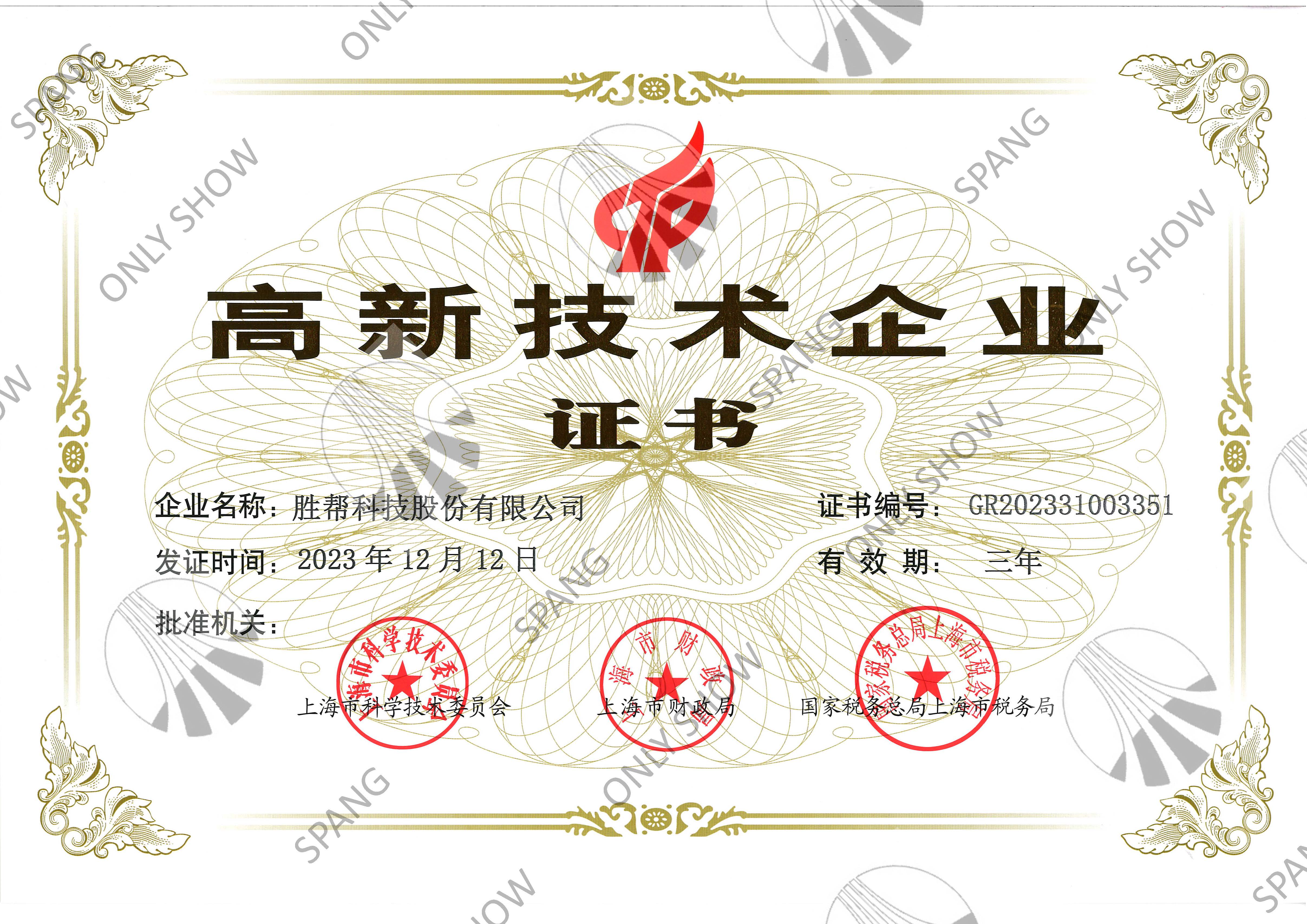 高新技術(shù)企業(yè)證書