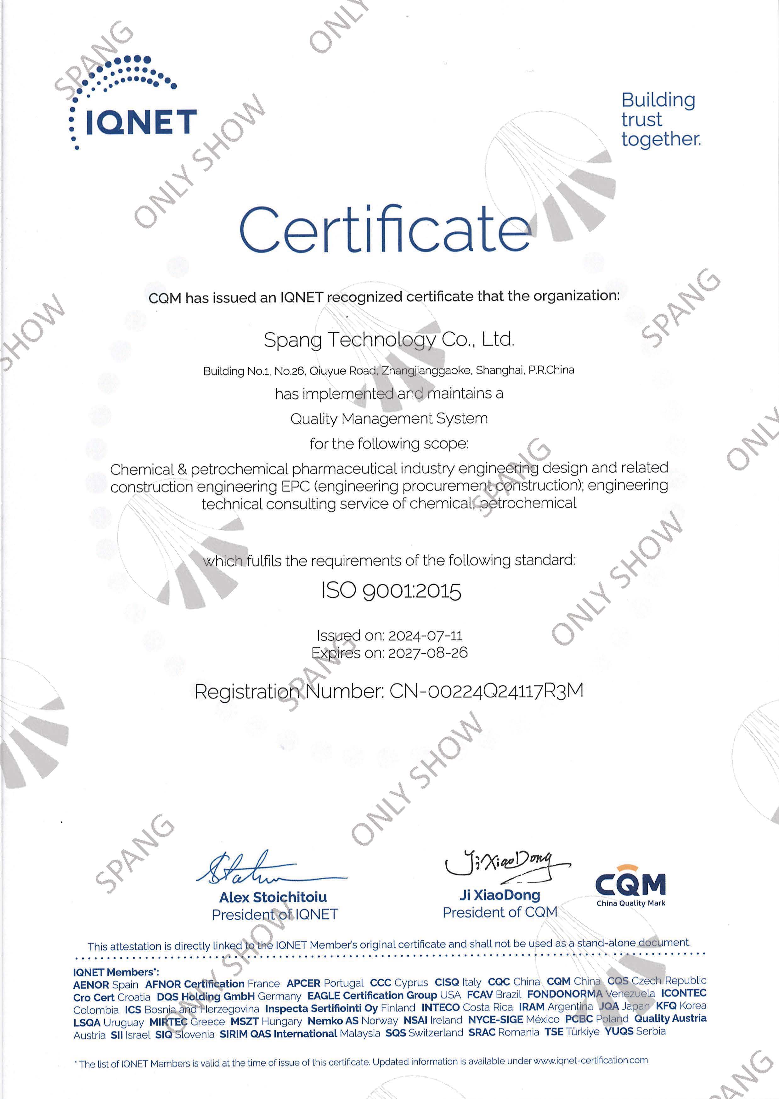 質(zhì)量管理體系證書(英文版)