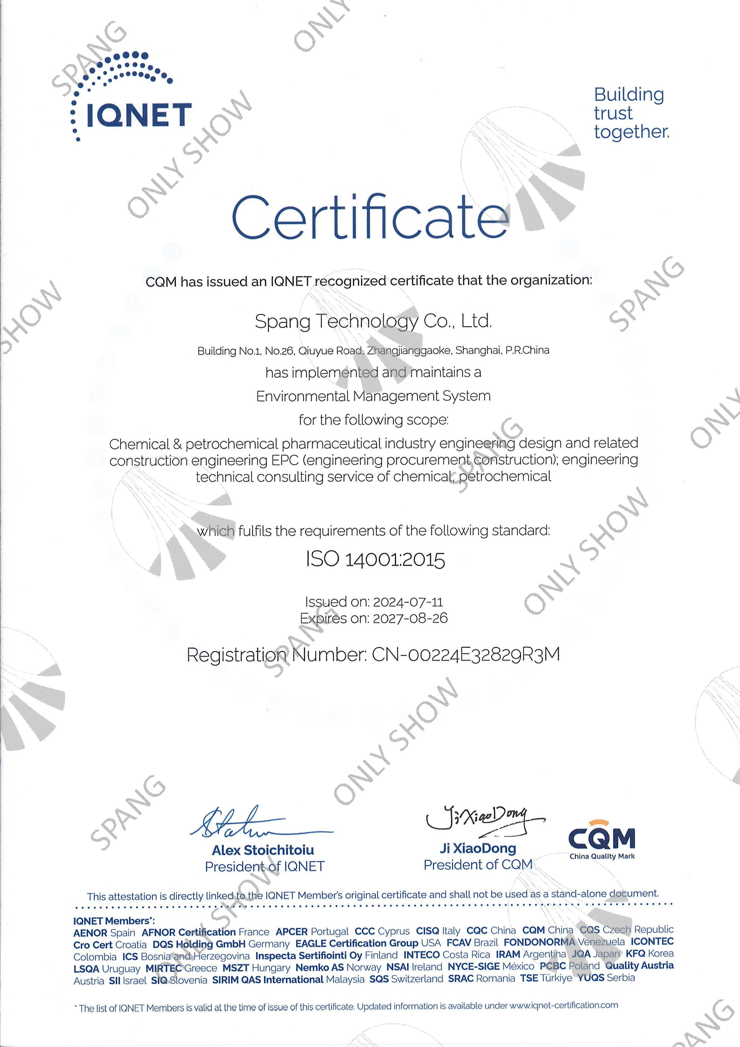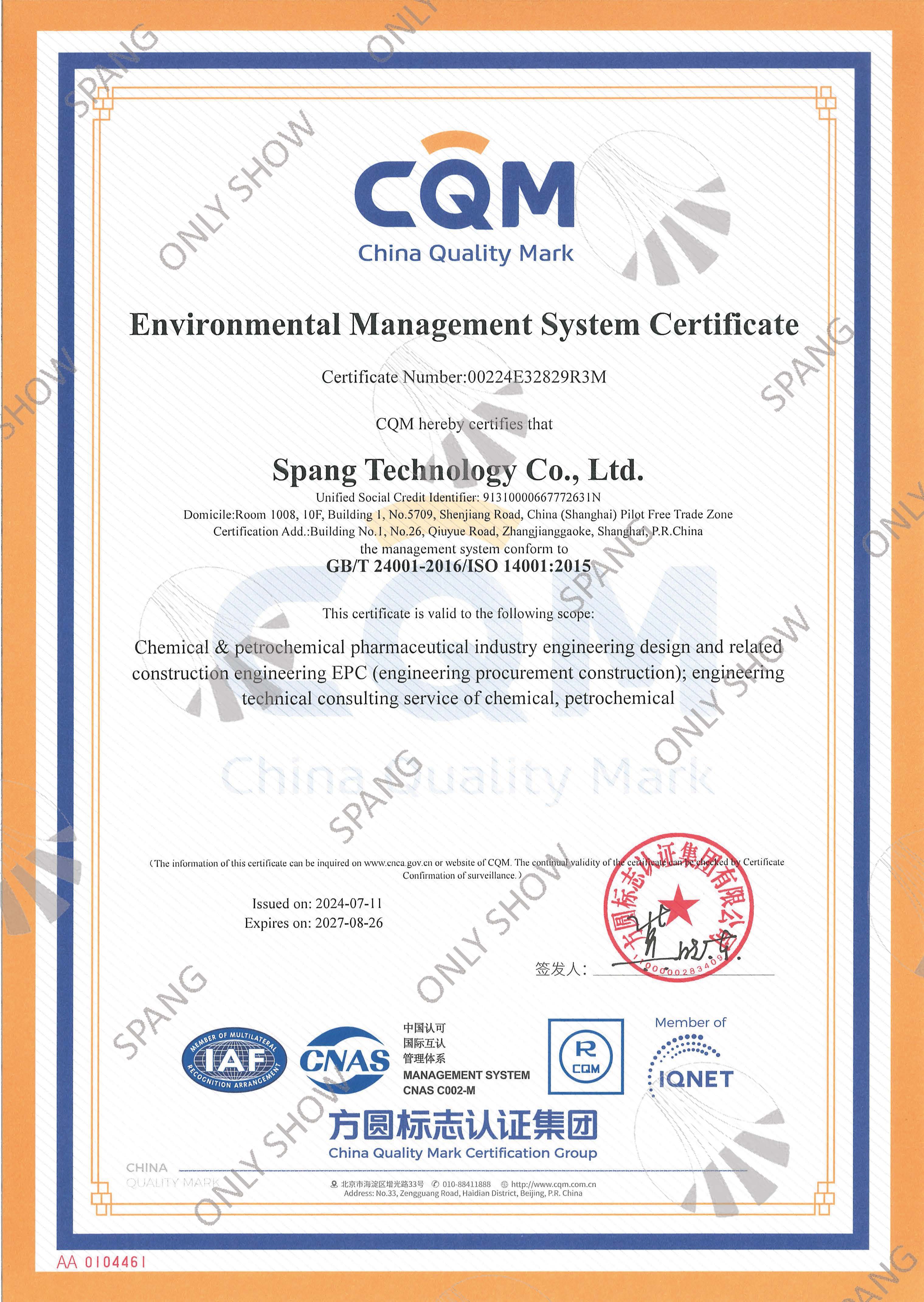 環(huán)境管理體系證書(英文版)