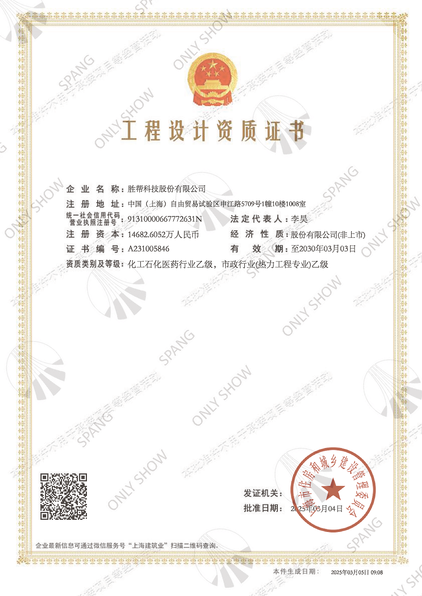 工程設(shè)計(jì)資質(zhì)證書(化工石化醫(yī)藥行業(yè)乙級(jí),市政行業(yè)(熱力工程專業(yè))乙級(jí))