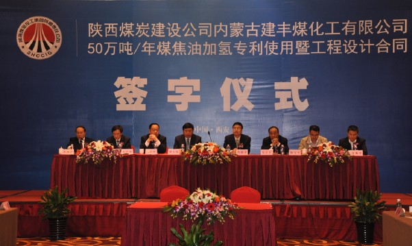 熱烈慶賀陜西煤炭建設(shè)公司內(nèi)蒙古建豐煤化工有限公司50萬噸/年煤焦油加氫工程設(shè)計(jì)合同簽約成功 上海勝幫黨委書記黨會財(cái)同志 上海勝幫沈和平總經(jīng)理