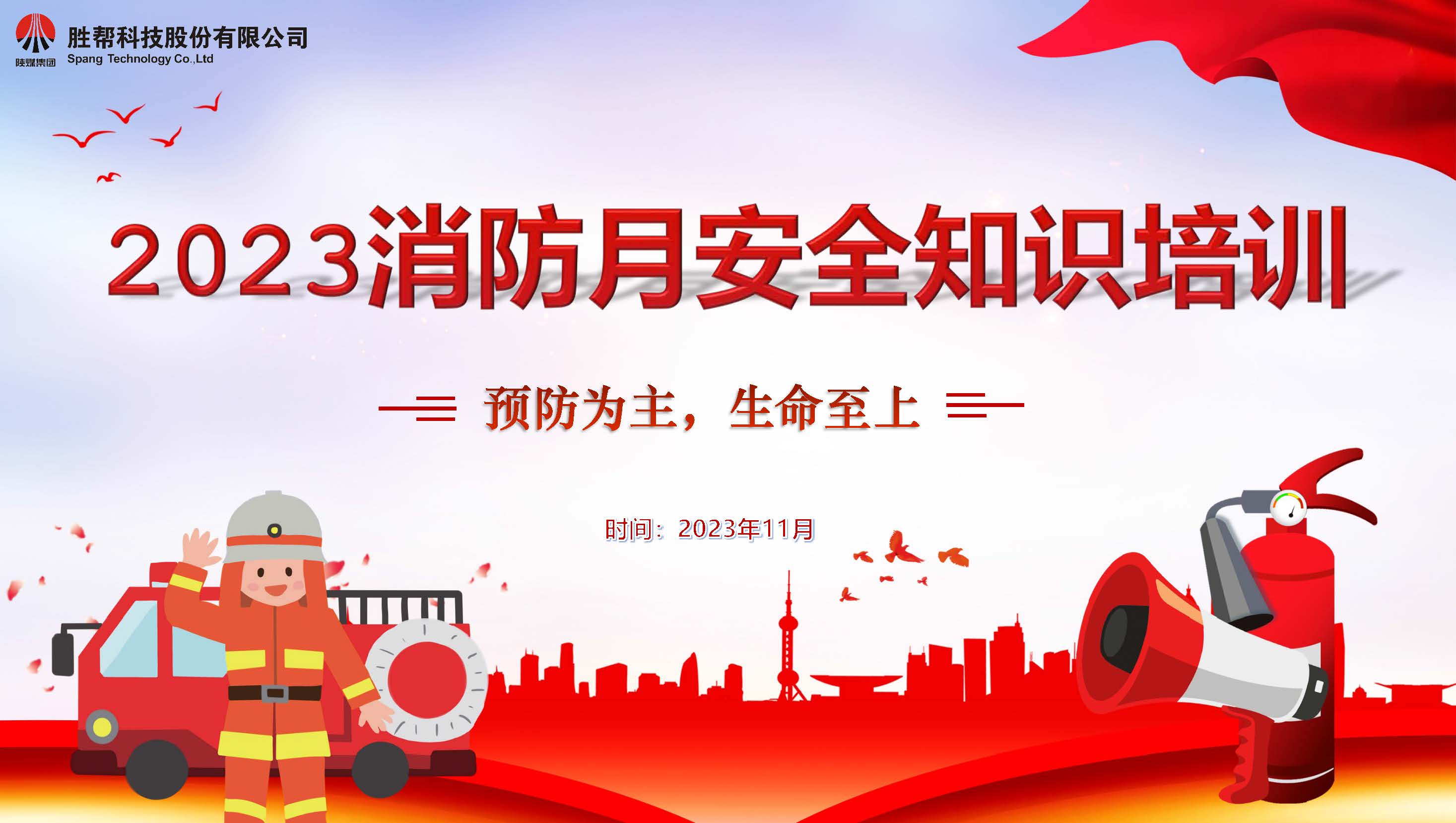 生命只有一次,轉瞬即逝,面對意外的來臨,我們無法預知,如果不能及時預防控制,便會頃刻間毀于一旦。2023年11月9日是全國第32個消防宣傳日,主題是“預防為主,生命至上”。為持續深入學習貫徹習近平總書記關于應急管理重要論述,認真貫徹執行《中華人民共和國消防法》,依法履行消防宣傳教育責任,提高個人消防意識和自救能力,防范和杜絕火災事故的發生。勝幫科技緊緊圍繞“…