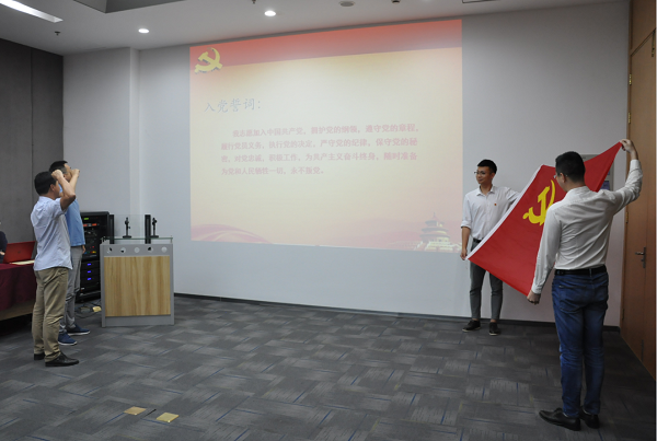 7月1日上午,為迎接中國共產黨成立98周年,勝幫公司黨委舉辦系列活動慶祝黨的生日,在一樓培訓室舉行2019年預備黨員入黨宣誓儀式及“七一”優秀共產黨員表彰、“不忘初心、牢記使命”主題教育等活動,參會人員包括公司領導及全體共產黨員。伴隨著《國際歌》的響起,入黨宣誓儀式正式開始。宣誓儀式不僅讓新黨員感受到黨的神圣,也堅定入黨信念和為共產主義奮斗終生的決心,同時讓…