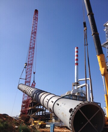 自第一臺(tái)設(shè)備進(jìn)場(chǎng)以來(lái),我項(xiàng)目部在業(yè)主、監(jiān)理的正確指導(dǎo)和大力幫助下,大型設(shè)備吊裝工作順利推進(jìn),隨著2014年9月20日“兩塔一罐”(焦化分餾塔、加氫分餾塔、焦化緩沖罐)精確就位,400噸吊車開始退場(chǎng),預(yù)示著全場(chǎng)大型設(shè)備吊裝工作圓滿結(jié)束。本工程大型設(shè)備數(shù)量多,吊裝工作量大,框架內(nèi)重型高壓設(shè)備復(fù)雜,設(shè)備平面布置緊湊。焦化分餾塔高61米,總計(jì)130余噸,吊車占位空間窄小,…