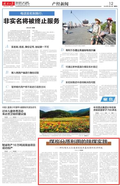 陜西日報:2016年9月20日 12版 煤炭分質利用的陜煤實踐 ——神木煤化工打造國家能源基地循環經濟樣板 本報記者 程靖峰 談起“煤炭分質利用”,神木煤化工董事長任沛建神采飛揚。這位見證了陜煤化集團力排眾議,將“煤炭分質清潔高效利用”作為煤炭與化工產業結合點的企業帶頭人,對煤化工產品及工藝路線如數家珍。 “煤炭分質利用采用中低溫熱解技術將煤熱解成氣…