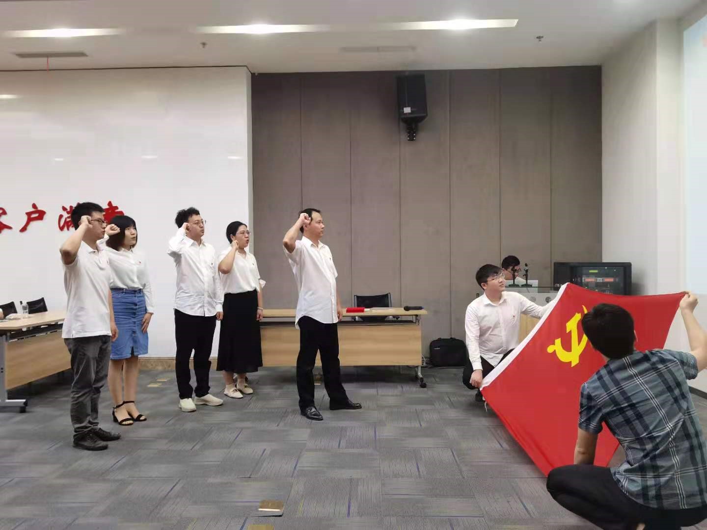 在會(huì)上,公司黨委組織新黨員在黨旗下莊嚴(yán)宣誓,全體黨員一起重溫入黨誓詞,回首建黨百年的崢嶸歲月。