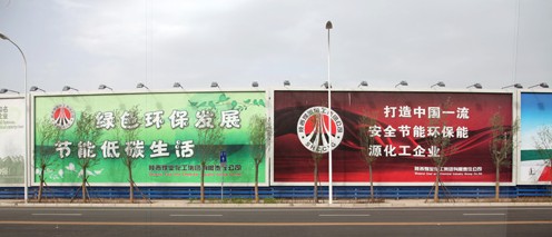 | 陜煤化集團處于世園會1號停車場對面的兩塊巨幅廣告牌 |
