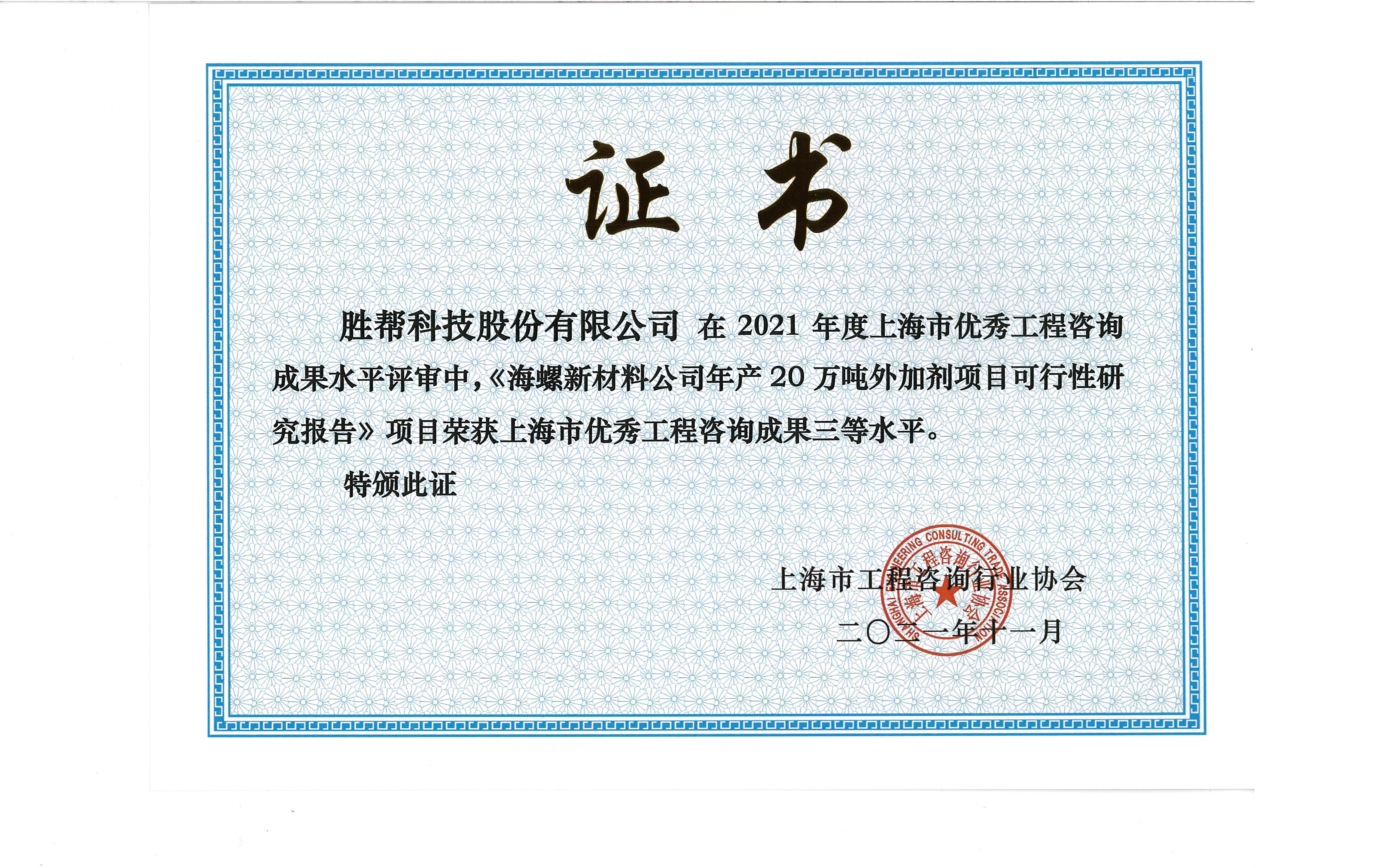 日前從上海市工程咨詢行業協會傳來喜訊,在“2021年度上海市優秀工程咨詢成果獎”評選中,我司編制的《新疆宣力環保能源有限公司600萬噸/年低階煤分質利用、10萬噸/年LNG、5萬噸/年針狀焦、50萬噸/年危廢煤焦油提質改造項目可行性研究報告》榮獲一等獎,《海螺新材料公司年產20萬噸外加劑項目可行性研究報告》榮獲三等獎。