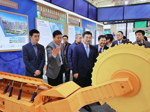 陜西省政府黨組成員陳春江、商務(wù)廳黨組書記賈鋒一行到陜西展區(qū)參觀指導(dǎo)。在陜煤集團(tuán)展位,了解了西安重裝集團(tuán)西煤機(jī)公司自主研制的世界首臺(tái)10米超大采高智能化采煤機(jī)的主要性能和使用情況。