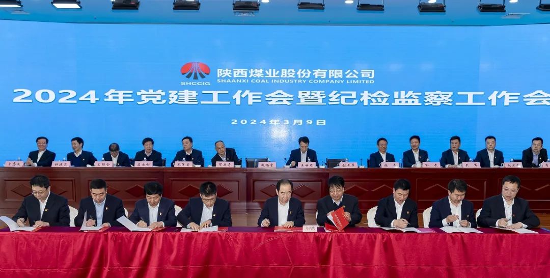 會議傳達了中紀委、省紀委三次全會和全省國資監管企業黨風廉政建設大會以及集團公司黨建工作會、紀檢監察工作會暨主題教育總結會精神。公司黨委委員、副總經理趙文革領學《關于進一步加強省屬企業黨風廉政建設的若干措施》《陜煤集團領導人員違紀違法行為負面清單》,公司黨委委員、紀委書記朱清睿安排部署2024年黨風廉政建設和紀檢監察工作。與會人員集中觀看了警示教育片,并開展黨風廉政建設交流研討。趙福堂與銅川礦業、蒲白礦業、澄合礦業、陜北礦業等16家代表單位的黨委書記簽訂了黨建責任書和黨風廉政建設責任書。陜西煤業領導班子成員,各部門正副職,所屬各單位黨政主要負責同志,專職黨委副書記,紀委書記,黨群工作部負責人等120余人參加會議。