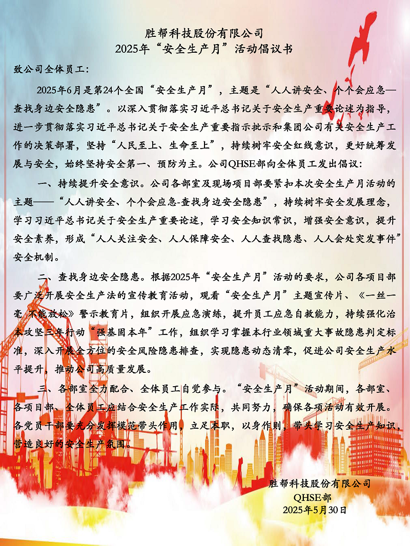 勝幫科技股份有限公司2025年“安全生產月”活動倡議書