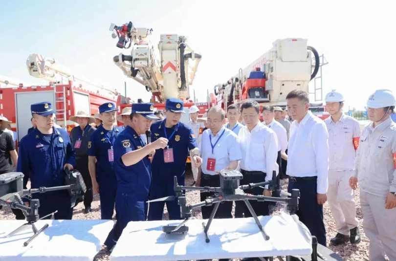 陜西省國資委二級巡視員白宏偉,陜西省應急管理廳救援協(xié)調(diào)和預案管理局局長韓軼,陜西省消防救援總隊副總隊長王強等有關(guān)單位領(lǐng)導,榆林市及榆神工業(yè)區(qū)相關(guān)領(lǐng)導,陜煤集團副總經(jīng)理杜平,陜煤集團煤炭、化工、電力板塊及所屬二級單位的分管領(lǐng)導和部門負責人等共500余人參與演練觀摩。演練由陜煤集團安全環(huán)保監(jiān)察部總經(jīng)理王西才主持。