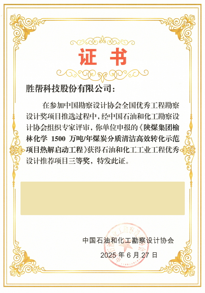 本次評(píng)選吸引了行業(yè)內(nèi)眾多企業(yè)積極參與,共219個(gè)項(xiàng)目合規(guī)進(jìn)入專家評(píng)審范圍,經(jīng)過(guò)專家團(tuán)隊(duì)的嚴(yán)格評(píng)審,最終評(píng)選出一、二、三等獎(jiǎng)共計(jì)131項(xiàng),其中化工工程領(lǐng)域獎(jiǎng)項(xiàng)達(dá)90項(xiàng)。在此次評(píng)選中,勝幫科技憑借卓越的技術(shù)實(shí)力與工程創(chuàng)新能力,申報(bào)的兩大項(xiàng)目脫穎而出,雙雙榮獲“化工工程優(yōu)秀設(shè)計(jì)推薦項(xiàng)目三等獎(jiǎng)”, 獲獎(jiǎng)項(xiàng)目分別為: