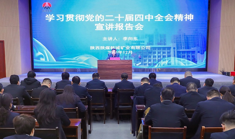 12月4日,陜煤集團黨委委員、工會主席、職工董事李向東到韓城礦業公司開展黨的二十屆四中全會精神專題宣講。韓城礦業公司領導班子成員、公司各部室負責人、各單位黨委書記、副書記、黨委(黨群)工作部負責人及黨員代表參加了宣講報告會。