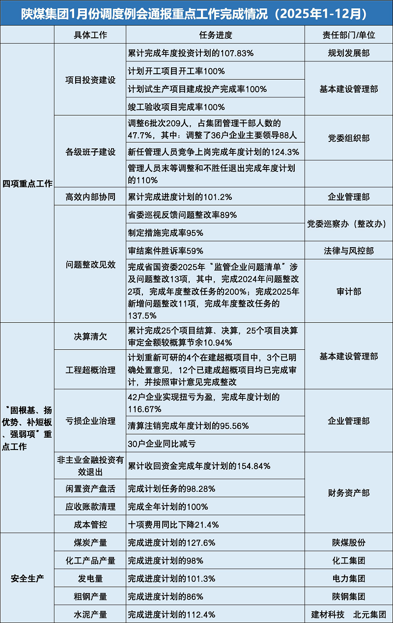 會議總結12月份及2025年重點工作任務完成情況,分析當前工作存在的問題和不足,安排部署近期重點工作;相關職能部門分別匯報了項目投資建設、高效協(xié)同發(fā)展、各級班子建設、問題整改及安全環(huán)保、生產(chǎn)經(jīng)營、閑置資產(chǎn)盤活、虧損企業(yè)治理等重點工作推進情況。