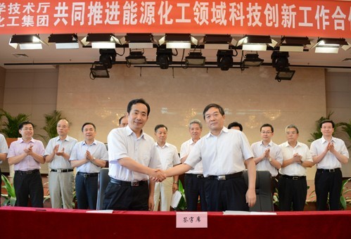 陜西省科技廳廳長(zhǎng)李明遠(yuǎn)、副廳長(zhǎng)安西印及科技廳相關(guān)部門負(fù)責(zé)人;陜煤化集團(tuán)董事長(zhǎng)華煒,總經(jīng)理?xiàng)钫涨?,副總?jīng)理尚建選以及陜煤化技術(shù)研究院相關(guān)負(fù)責(zé)人參加了簽字儀式。簽字儀式由省科技廳副廳長(zhǎng)安西印主持。