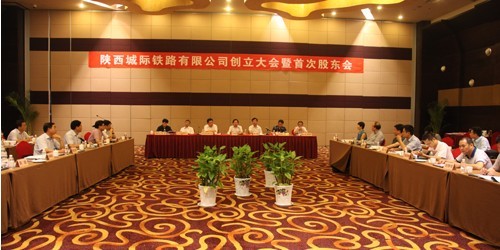 會上,各方股東代表以舉手表決的方式審議并通過了《西安北客站至咸陽機場鐵路建設項目推進情況籌備報告》、《陜西城際鐵路有限公司股東會、董事會議事規則》等議案,審查通過了陜西城際鐵路公司一屆一次董事會、一屆一次監事會成員名單,并共同簽署了合資建設經營西安北客站至咸陽機場鐵路軌道交通項目合同書、陜西城際鐵路有限公司章程。