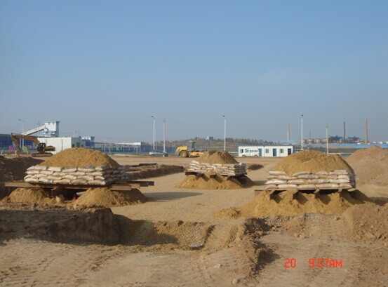 10月16日土建單位定標。隨后土建單位進場,開始了土建施工。材料進場、測量放線、場地平整、基槽開挖、級配砂石回填、取樣送檢,各項工作正在有條不紊的按計劃推進。在現場的每一位勝幫人都盡心、盡力、盡職、盡責的努力工作著,為施工單位出主意想辦法,現場專工與公司設計、采購人員及時溝通,對現場出現的問題及時解決,有效的推動了施工進度。
