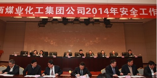 會上,集團公司總經(jīng)理楊照乾代表集團公司與所屬板塊黨政主要領(lǐng)導簽訂了安全責任狀,陜西煤業(yè)股份公司總經(jīng)理宋老虎與股份公司所屬各單位黨政主要領(lǐng)導簽訂安全責任狀,集團公司副總經(jīng)理尤西蒂與化工板塊所屬各單位簽訂安全責任狀。對2013年度安全生產(chǎn)先進集體、先進工作者、實現(xiàn)安全生產(chǎn)年單位、安全生產(chǎn)(質(zhì)量)標準化先進單位先進煤礦及實現(xiàn)安全生產(chǎn)2000天以上煤礦和2013年度國家級安全質(zhì)量標準化礦井進行了表彰。銅川礦業(yè)公司、澄合礦業(yè)公司、陜焦公司、建設(shè)集團、陜鋼集團五家單位代表在會上進行了表態(tài)發(fā)言。