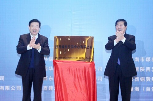 中國煤炭工業協會會長王顯政、陜西省副省長李金柱為陜西煤炭交易中心揭牌