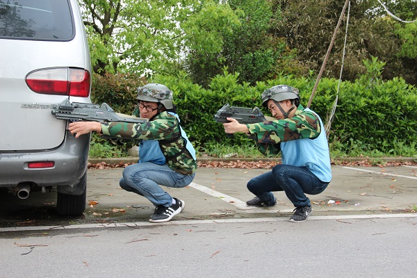 中午小憩之后,真人CS實戰正式拉開帷幕,隊員們仔細聆聽教練講解的裝備知識和基本戰法。在挑選完各自裝備后雙方隊員早已躍躍欲試,迫不及待地準備戰斗。