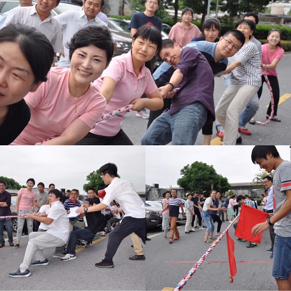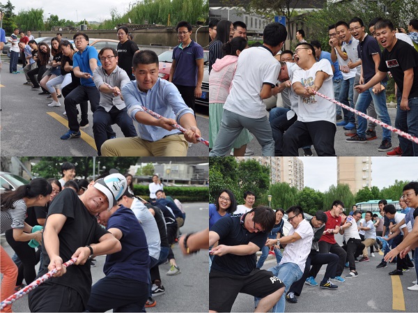 自口號展示環節開始各參賽隊都氣勢如虹,蓄勢待發,企圖在氣勢上先壓倒對手。比賽準備階段,雙方隊員早已進入“戰斗”狀態,雙手緊握麻繩,雙腳用力著地,身體向后微傾,齊心協力凝成了一股繩!各隊隊長更是精神振奮,跑前跑后地布置戰略。哨聲一響,雙方口號震天,氣勢軒昂。且看各位同事,有的臉憋得通紅卻絲毫不放松,有的“面部猙獰”使盡渾身解數,有的干脆閉上眼睛卯足了勁兒往后拉。加油聲此起彼伏,喧囂振耳。戰況是激烈、緊張而殘酷;勝者,歡欣鼓舞,敗者,揚言誓要再度殺回,一決勝負。經過一小時的精彩角逐,最終“12隊”奪得冠軍,“第八小分隊”喜獲亞軍,“龍隊”獲得季軍。
