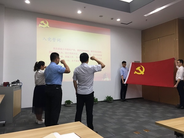 6月15日上午,在中國共產黨成立97周年之際。中共勝幫科技股份有限公司委員會在一樓培訓室舉行2018屆預備黨員入黨宣誓儀式及“反腐倡廉知識測試活動”,與會人員包括公司領導及全體黨員。